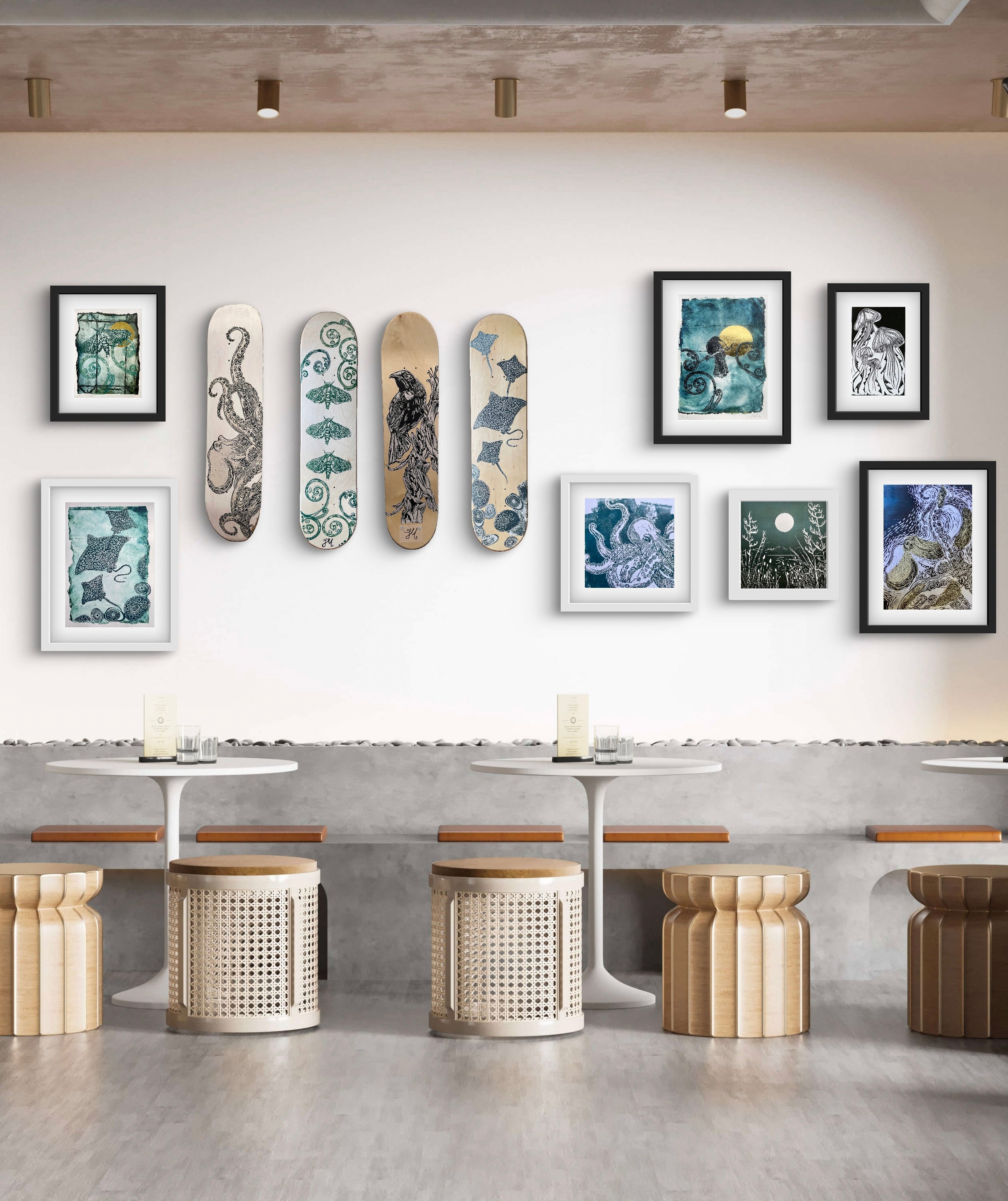 Original handmade prints by Wellington Artist Jolene Maciak, inspired by ocean, beach and native bush of Aotearoa New Zealand.
