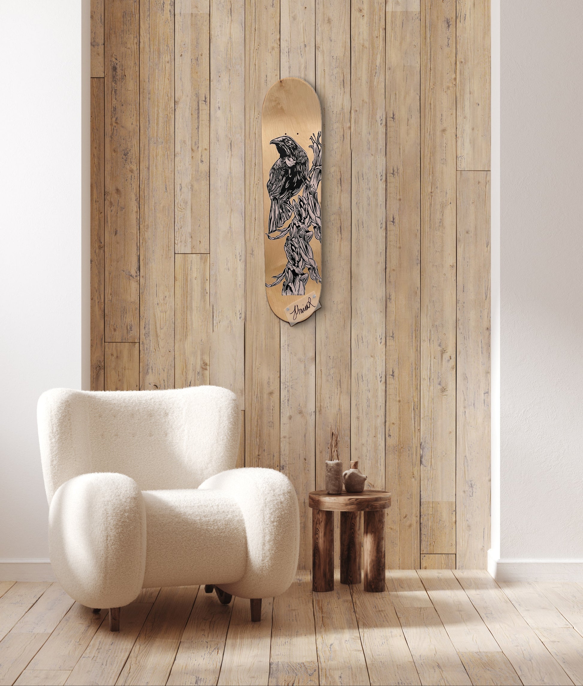 Custom skate decks using a range of my original lino print art. Lino is printed onto super lightweight 45gsm paper and then cut and overlaid on to either bare wood or painted skate deck, in the street art “paste -up” style.