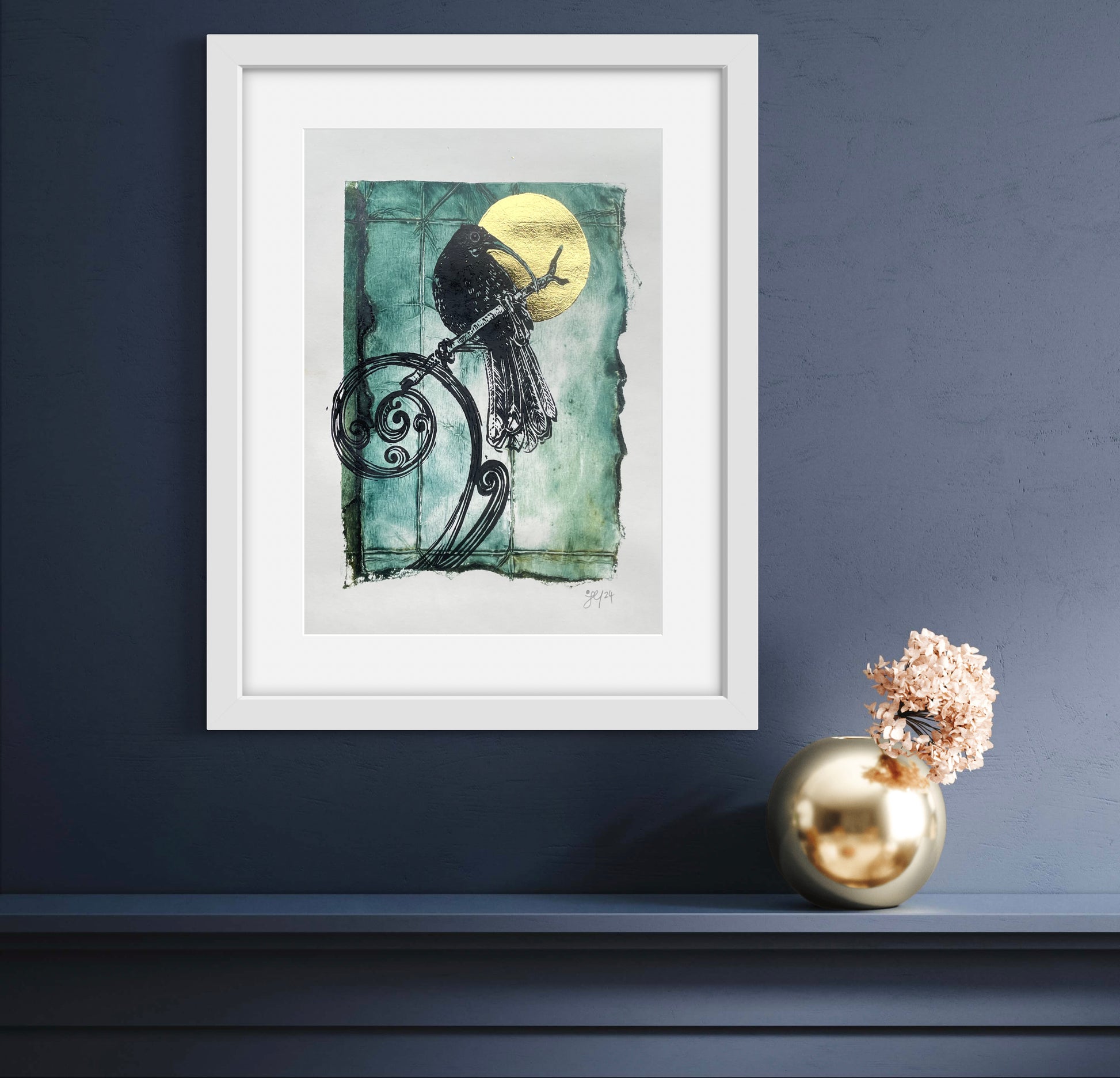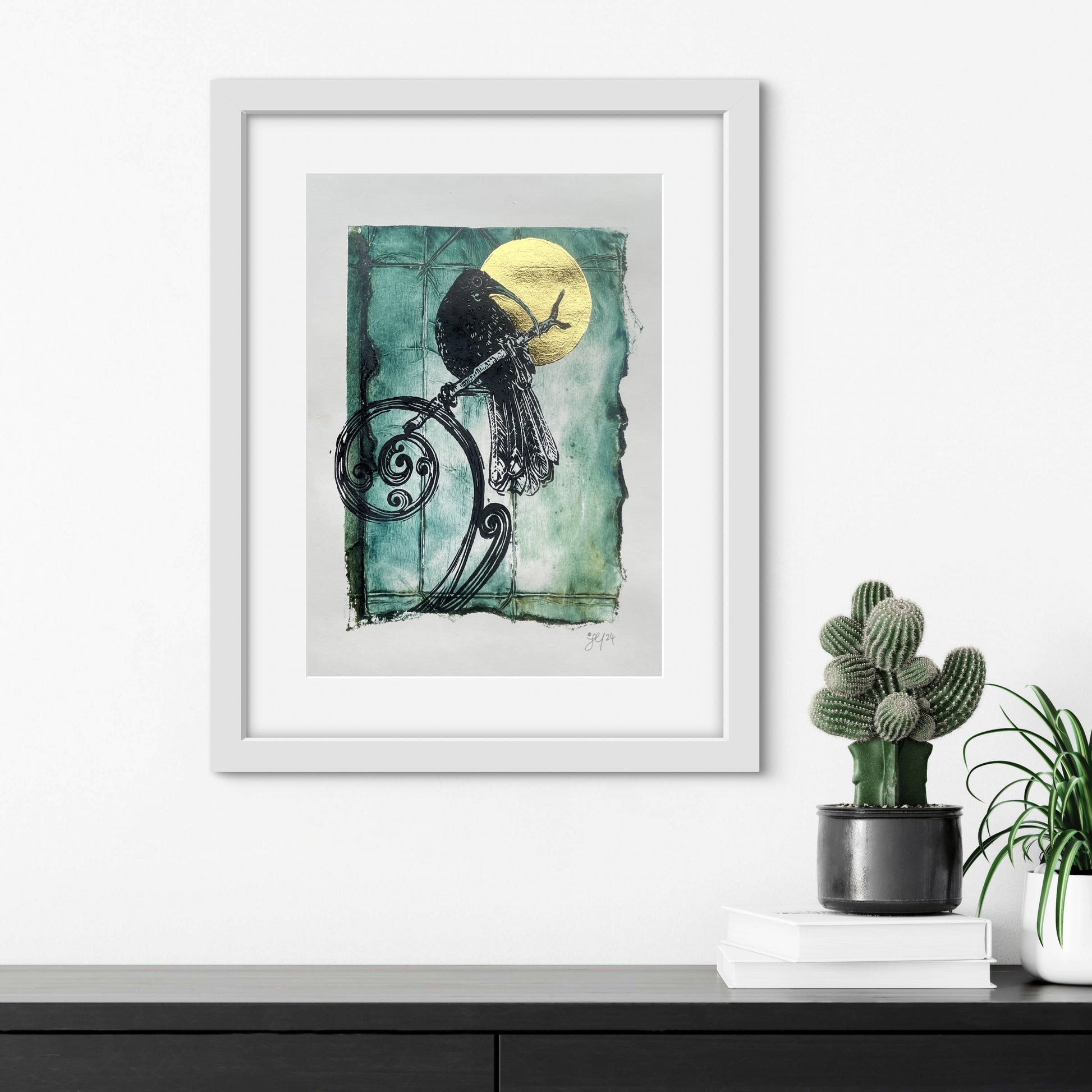 Every step in the process of making the linocut, from drawing and designing, to carving and printing, is done by hand, and as such, every linocut is completely unique and may vary slightly in colour, ink evenness and other small variations.